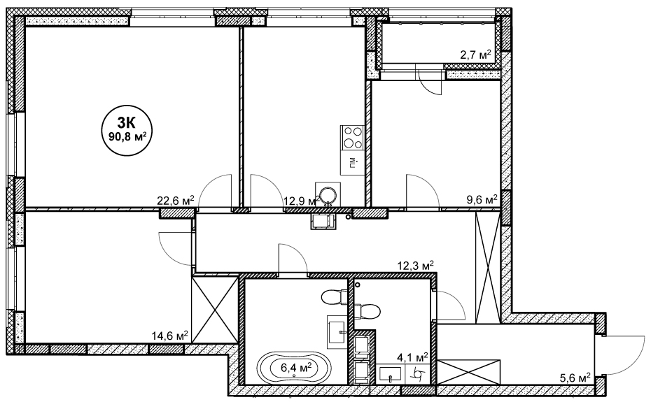 3-комнатная квартира № 126